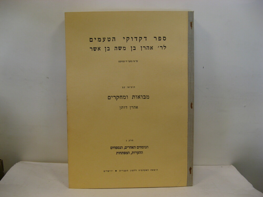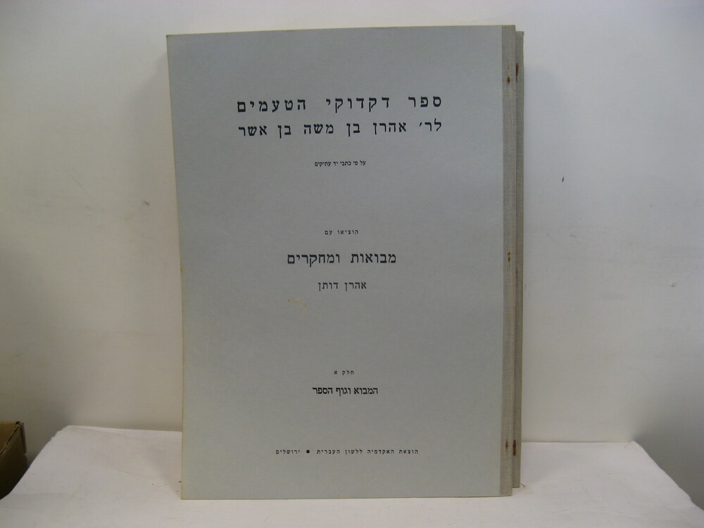 IN HEBREW, WITH ENGLISH PREFACE. IN CARDBOARD CASE. SIGNED BY ARON DOTAN. [The case is slightly stained, with some water damage on the inside.]