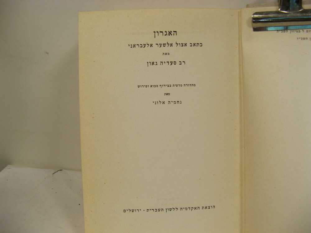 Author Ga'on, Se'adya / Allony, Nehemya [Intro, Commentary.]