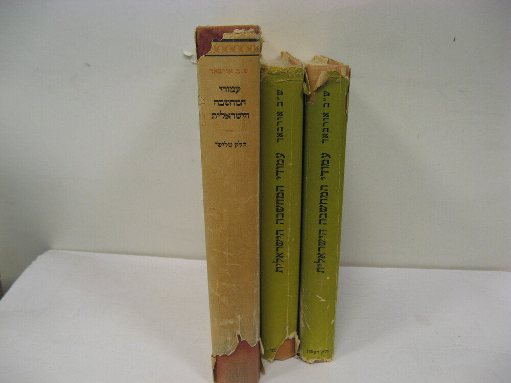 IN HEBREW ONLY. Three volume set. [Volumes I + II]: 14.5X22.7 cm. [318] + [327-677] pages. Hardcover with paper dust jacket. [Jacket slightly torn.] Spine slightly rubbed. [Volume I]: Lower part of front cover slightly stained.