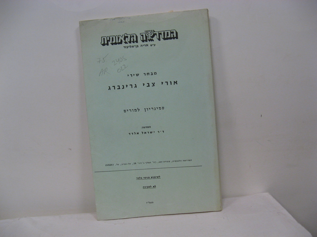 20X32.5 ס"מ. 44 +כח עמ'. כריכה רכה. כריכה מקומטת במספר מקומות. שולי כריכה דהויים מעט. כיתוב קטן בעט בחלק עליון של כריכה קדמית. שדרה דהויה ומקומטת. דפים מצהבים. כיתובים וסימונים בעט ובעיפרון על עמודים - ללא נזק לטקסט. מלבד זאת במצב טוב.