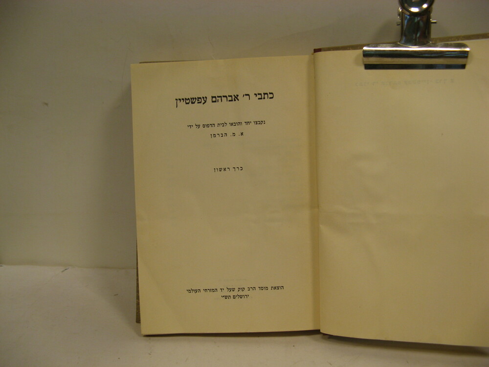 כרך ראשון בלבד. 16X23 ס"מ. שצ עמודים. כריכה קשה. שדרה מעט דהוייה. שדרה מקולפת בחלק תחתון. חלק תחתון של צידי עמודים מעט מוכתם - ללא נזק לטקסט. מלבד זאת במצב טוב.