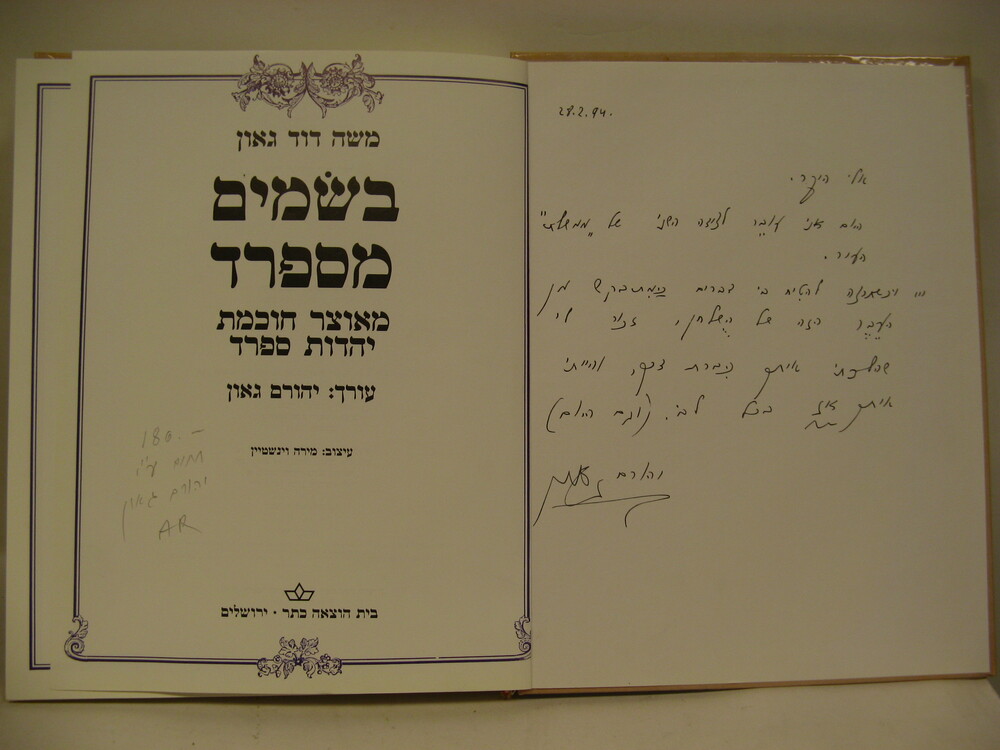 בשמים מספרד: מאוצר חוכמת יהדות ספרד [חתום ע"י יהורם גאון] [בעברית ולדינו]